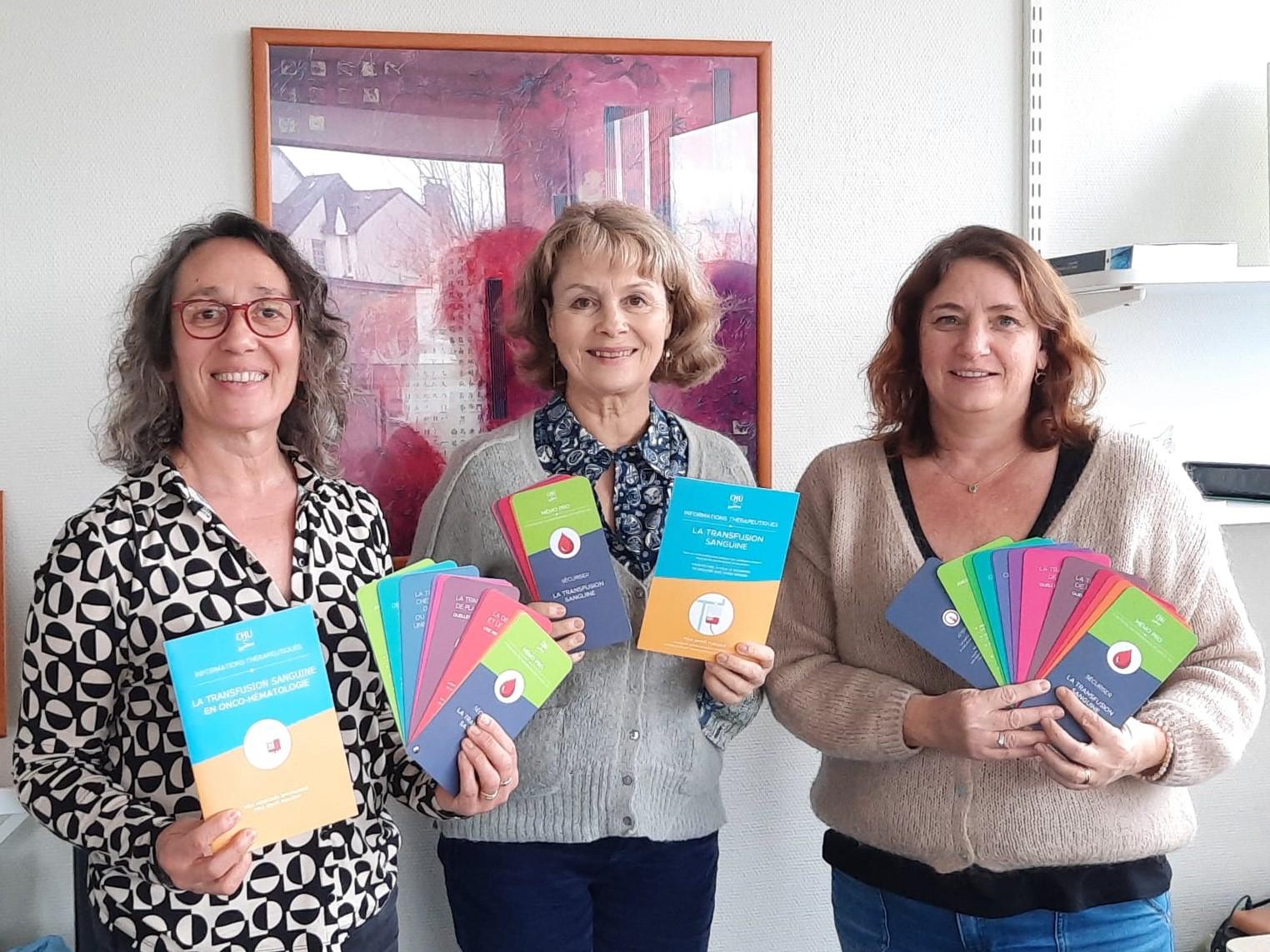Nous travaillons en étroite collaboration avec l’Etablissement Français du Sang Bretagne qui assure un conseil transfusionnel auprès des équipes de soins 24/24. L’EFS nous ouvre également ses portes pour compléter les formations des professionnels par des visites du secteur de la délivrance des produits sanguins et des laboratoires. Pour les futurs médecins faisant une thèse sur la transfusion et nos référents transfusion (infirmiers, cadres de santé, coursiers sang), des visites très détaillées du plateau de production sont organisées. Ces échanges pluriquotidiens et rencontres interprofessionnelles enrichissent les relations entrer le CHU et l’EFS en favorisant la connaissance des métiers de chacun."